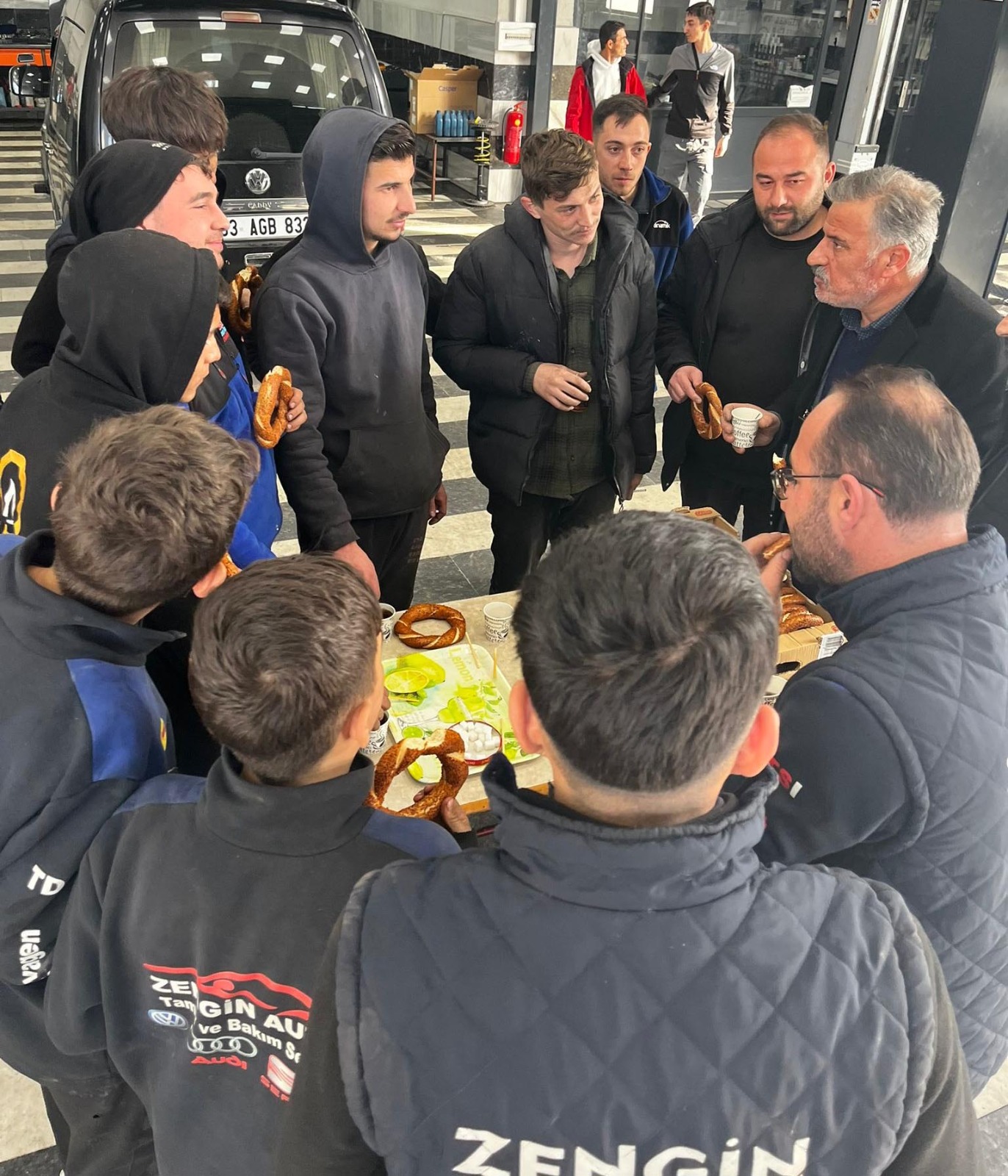 Sabah saatlerinde iş yerlerini temizlerken Mustafa Kunak’ı karşılarında gören sanayi çırakları, Kunak ve ekibiyle birlikte çay ve simit eşliğinde kahvaltı yaptı. Samimi ortamda gerçekleşen buluşmada çıraklar, yaşadıkları sorunları ve beklentilerini dile getirdi.